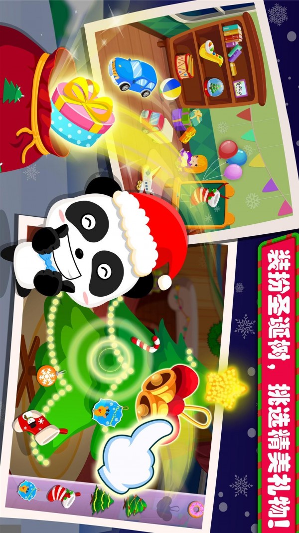 【惊喜圣诞礼物】乖宝宝都能收到圣诞老人送的礼物哟!神秘的圣诞老人已经为宝宝准备好了惊喜的圣诞礼物~当礼物盒子从天而降的时候快动手点开它们吧!是萌萌哒小猴子还是可爱的小兔子呢?随意拖动礼物还可以摆出各种创意造型哦!