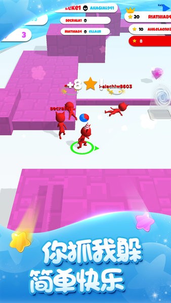 2.20人在同一屏幕上追逐:开始2vs18超级追逐游戏。随机去老鼠那里使用各种障碍物和道具来躲避猫的追逐,并收集更多的宝石。随机化到猫身上,试着用你聪明的定位和预测抓住狡猾的老鼠。