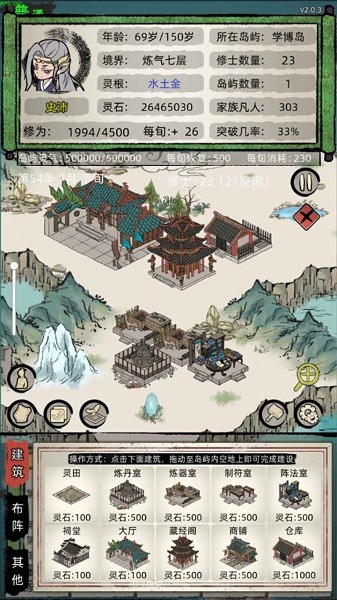 修仙家族模拟器游戏中玩家扮演一个家族祖先的角色,组建一个家族,然后占领一个海域中的秀县岛,带领家族逐渐成长和发展。在成长的过程中,你可以捕获秀珍的其他岛屿,探索深海,探索神秘的地方,等等。修仙的背景采用了人流的基本设置。修仙境界分为炼气、筑基、金丹、元影、神化。神化之后,你需要飞向精神世界。地理环境采用秀珍海域,犹如星海混沌。凡人和修士生活在小岛上。这些岛屿由家族和宗族主导的力量管理。玩家需要共同努力,在这种环境下巩固家庭。可以培养不同的技能,需要完成随机地图、事件和游戏任务。操作简单,给人不同的修炼不死乐趣!