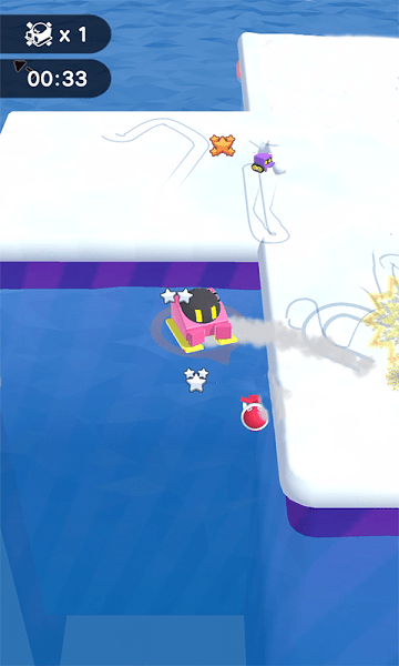 速滑挑战控制摩托雪橇车在雪地表面滑动并推动雪球。随着摩托雪橇车的滑动,雪球会越来越大。此时,雪球将弹出,将对手推入大海。在攻击对手时,你也应该密切注意对手的位置,小心不要被对手的雪球从雪地表面弹出。