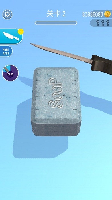 肥皂切切切提供了许多关卡。每个关卡包含不同的肥皂片。你只需要点击屏幕,让小刀不断地刮肥皂,就可以通过关卡。游戏非常简单,声音也非常解压。这是一个打发时间的好选择。