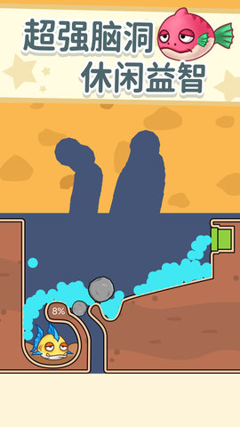 1.同学帮帮它游戏是一个超级有趣的益智游戏,其中鱼被困在没有水的地方。