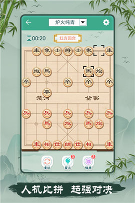 此外,您还可以直接打开同一屏幕交互,即打开后,您可以打开双方之间的决斗,并在同一手机上打开棋盘决斗。如果你没有一个小伙伴与你在线玩,那也没关系。你可以在这里开始排名模式,并与其他网民开始紧张的象棋比赛。如果你心情不好或者觉得其他玩家下棋太差,你也可以在这里进入传球模式,或者用人机AI下棋几秒钟,你可以忏悔,这可以帮助你快速提高你的象棋水平。喜欢下棋的孩子们来这里下载这个有趣的在线版本的象棋,和你的朋友一起玩,这样你就可以随时随地玩游戏了!