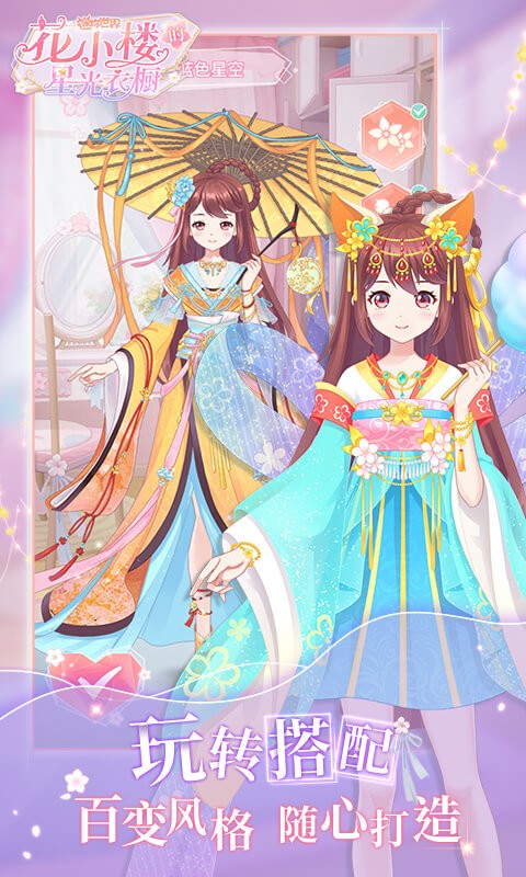 1.花小楼的星光衣橱是一个充满女孩们心的变化的游戏。它模拟并匹配数百种服装材料,轻松打造独特的女孩气质。