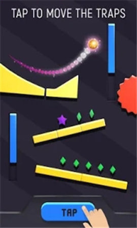 3、它沿着一侧疯狂水龙头的蜿蜒小径反弹,同时收集星星和宝石。