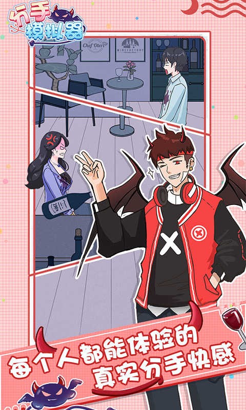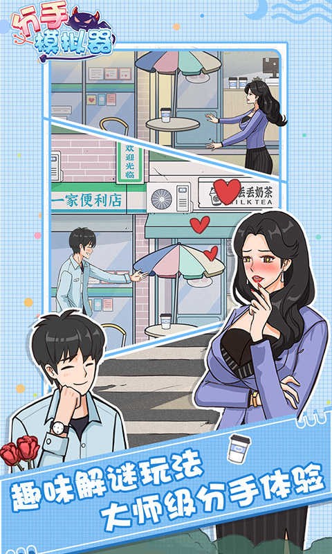 分手模拟器,体验最精彩的分手情节解谜方法。玩家在游戏中的行动目标是确保他们能够打破恋人之间的感情。玩家可以尝试各种方案来破坏他们的感情。