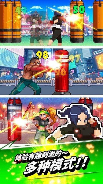 拳打天下是一款小型拳击动作格斗游戏,采用经典像素风格的图片设计和制作。以组合和释放打击、不断升级、突破限制、与对手竞争以及在实时pvp游戏中竞争。