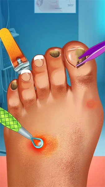 解压修脚模拟器是一款非常新颖的商业模拟游戏。它的玩法非常独特。玩家在游戏中扮演专业足疗师。面对各种脚的情况,我们需要根据自己的经验帮助他们解决现有的问题。在足游戏中,你将成为一名足部修复医生,来修复每个客户的脚。他们的足部问题可能不同。你需要使用各种工具来解决他们的问题,并让他们知道你的声誉,这样生意才能越来越好!