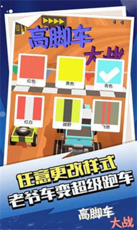 2、高脚车大战的玩法非常简单,只是抑制了汽车的前进。玩家可以自由选择各种汽车。