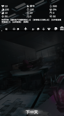1、独特的文字末日求生游戏,游戏展示的是世界末日后的七天,世界非常恐怖。