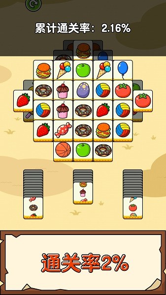 开心消一消是一款三消游戏。游戏的上部是道具区,下部是合成坦克。玩家需要在上面的道具区域中找到三个相同的道具,然后点击合成坦克来消除它们。彻底消除以上所有道具就是游戏的胜利。如果下部合成罐已满,它将失败。比赛中有一场洗牌。移除卡片道具。玩家可以合理使用道具来完全消除上面的牌。