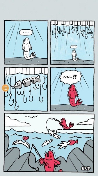 2.现在轮到我们钓鱼了。由于人类捕鱼,这条鱼失去了家人和朋友。