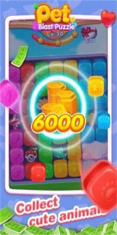 1、宠物爆炸之谜规则很简单,每个消除块必须是至少两个相邻的相同颜色的块。