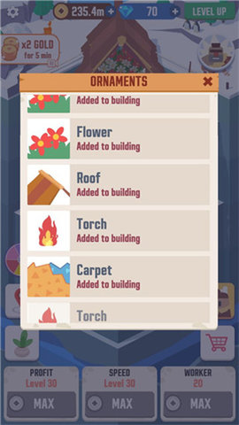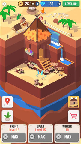 2、管理工人,建造漂亮的房子,赚取金币,取得更多的工具。
