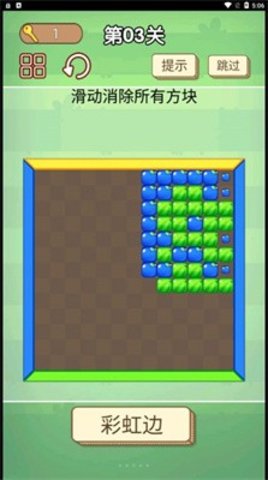 1、滑动方块切换位置,消除方块对应颜色,消除所有方块,成功完成相应关卡挑战。