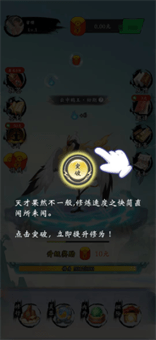 1、修行的地方,突破一级就会收到红包奖励,各种精神装置和药物等着你收集,帮助你快速突破,获得更强大的力量。