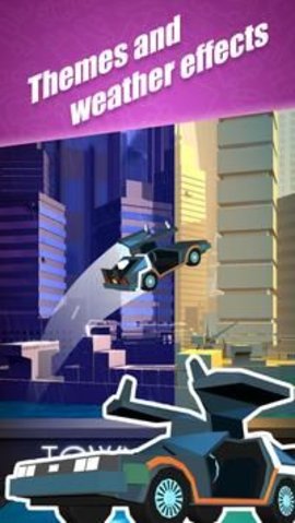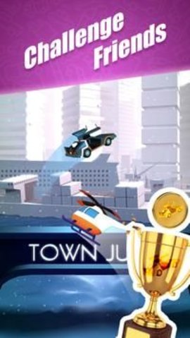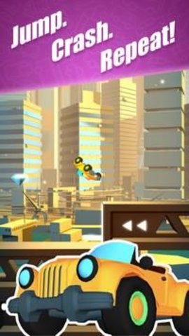 2、城镇跳跃是一款卡通画面的横版赛车游戏,在此游戏中玩家将驾驶汽车在城市高楼上跳跃翻转冲刺,