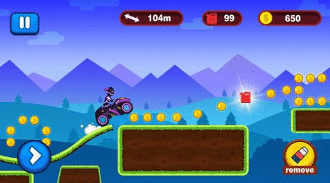 1、卡通画面,非常刺激的赛车玩法,解锁不同的摩托车,开启清爽挑战。
