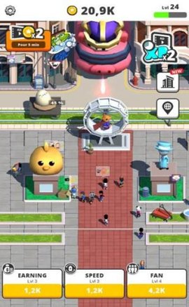 1、闲置仓鼠滚轮游戏收集更多的仓鼠,让它们骑着轮子为所有城市发电。