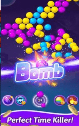 指尖气泡这是一款非常有趣的消除闯关类游戏。玩家可以在这里尽情射击各种泡泡,将所有的泡泡全部消灭,就可以赢得游戏。您需要查看您将要发射的气泡球的颜色,将其放在相应的相同颜色的气泡球上,您可以消除相同类型的球。