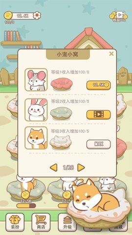 1、玩家将在宠物窝中收集各种各样的小宠物,并用它们来赚取收入。
