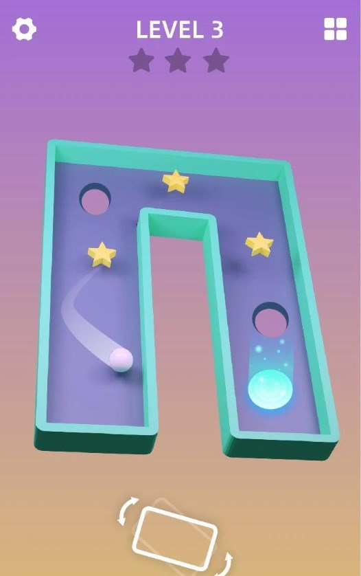 2、通过调整手机平衡使迷宫倾斜,使球顺利通过关卡,充分利用陀螺仪;