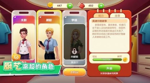 烹饪梦想国游戏中为卡通风格,玩家应该在里面煮更多美味的食物,这样你的商店就会有顾客,这个游戏中还有许多角色,他们烹饪很熟练,他们应该根据自己的需要选择合适的,玩家也应该满足所有顾客的口味,只有这样你才能盈利,快去提高你的烹饪技巧,来做更多美味的食物。
