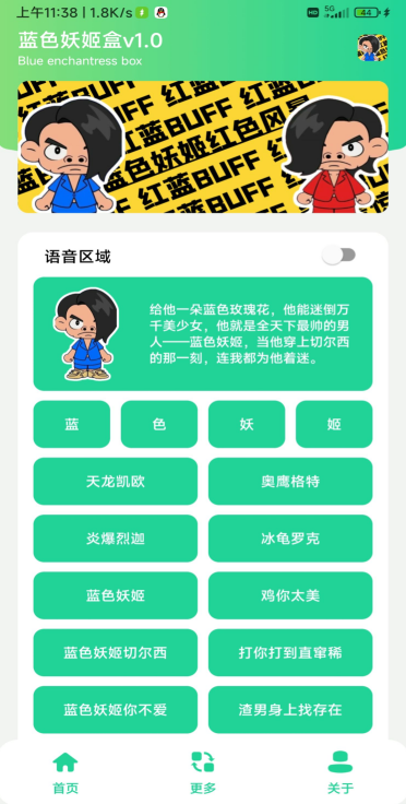 蓝色妖姬语音盒是一个模仿网络流行表情包“别踩我的切尔西”的盒子蓝色妖姬语音盒内置超多原创音频,超强的声音语音效果,用户可以随时免费使用,还可以用一键打开悬挂窗口形式。