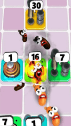 3、香肠碰撞游戏请及时观察每个陷阱的数量。如果号码不对,会引起爆炸。