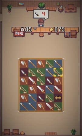3、同一类型的三种武器的组合可以消除。武器数量的减少将有助于您满足客户的需求,并将您获得的资金用于扩展您的店铺。