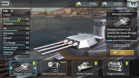 2、升级潜艇的装甲,速度,火力,根据不同的射击战术选择最适合的武器,成为海军冠军。