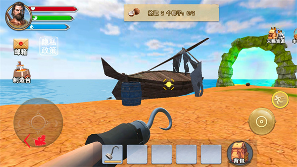 1、在海洋上创造你自己的领地,学习如何制作工具,让你的生活变得更好。
