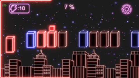 2、一款休闲节奏跳跃游戏,考验你的手脑操作,点击屏幕不同区域,控制小方块的移动,完成关卡即可战斗。