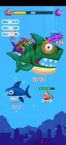 2、大鱼吃小鱼进化游戏的难度可以自由调整。随着玩家的成长,游戏将变得更加困难。