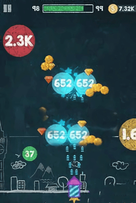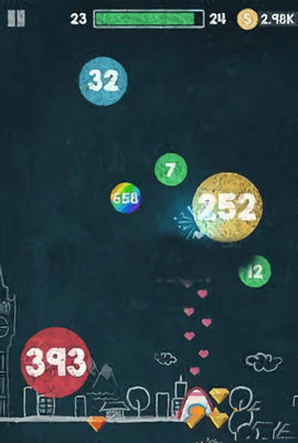3.射击大型障碍物时,它们会分裂到一定程度,小障碍物必须完全消失才能消除。