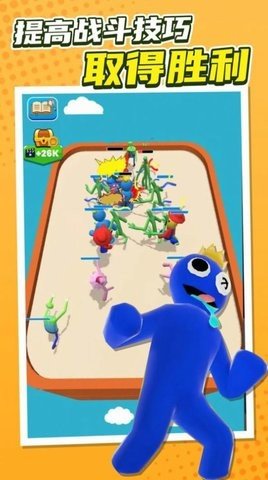 1、玩家需要在游戏中合成他们的彩虹怪物朋友,他们需要更快地提高自己的战斗技能,成功地在战斗中生存下来,并击败娃娃敌人。
