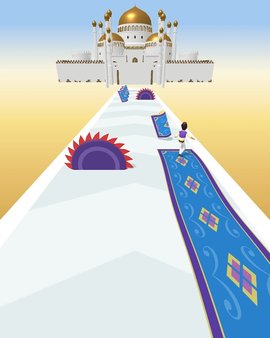 1、控制飞毯突破各种障碍,选择正确的路径,快速移动。