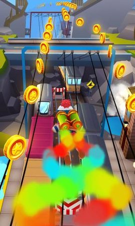 2、玩家经过支配角色,腾跃和向左或向右滑动开端跑酷冒险。