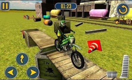 特技摩托车越野赛是一个非常有趣的驾驶模拟游戏。在这里玩家将在给定级别的游戏中获得乐趣,你需要在各种障碍物面前驾驶摩托车前进,这是对玩家技能的极大考验。但幸运的是游戏的操作非常容易掌握。几场比赛后玩家就将变得非常熟练。