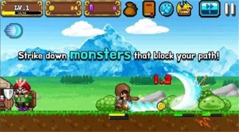 1、通过横向滚动的战斗冒险,你可以释放你的角色的潜力,在无尽的冒险地图上自由战斗,并赋予你的英雄力量。