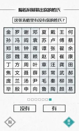 2、互动关卡玩法,玩家可以根据关卡内容进行选择,让系统猜出你的姓氏。
