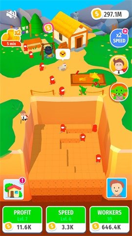 1、简单的卡通风格,你会在这里招募不同的工人,使用挖掘机完成不同的任务。