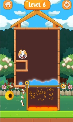 3、体验有趣的拔针解谜方法,在各种场景中快速解救小狗,并不断尝试新的拔针序列。