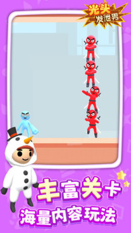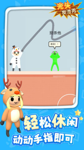 2、光头发泄男有着丰富的关卡可以随意选择,各种道具可以用来完成任务,享受快乐的游戏过程。