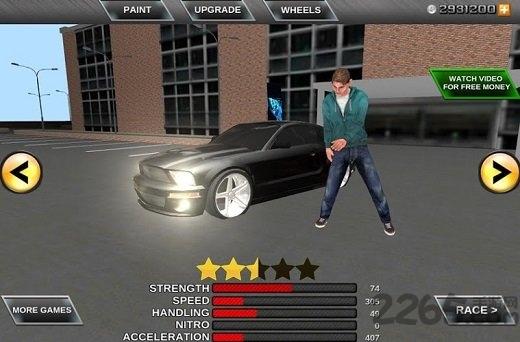 3、你的车是一个自然的颜色,玩游戏来改善它,选择你将扮演的角色和城市之间的驾驶。