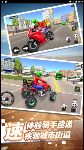 3.外卖终极狂飙游戏中有非常刺激的游戏玩法,以应对各种路障和危险,并安全送货。