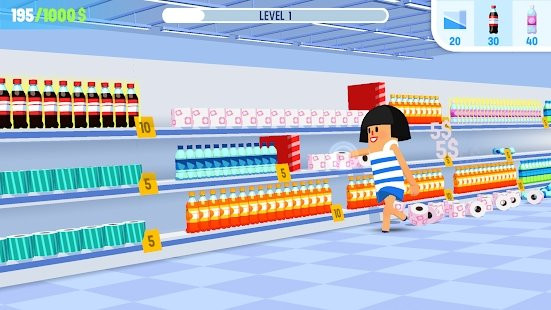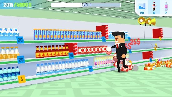 2、砸场子的购物者卡通游戏屏幕可以给你最特别的感觉。超市的布局很好。商品种类繁多,玩家可以自由玩耍。