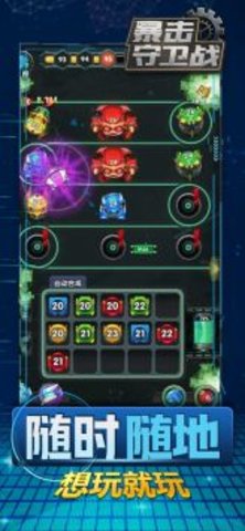 暴击守卫战是一款非常有趣的塔防策略合成游戏。玩家可以在这款游戏中创造许多新颖的战役玩法。你需要建立自己的炮塔来建立一个强大而安全的阵容。赢得游戏,不断获得各种资源。升级炮塔以增强战斗力。