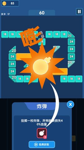 2、砖块爆爆爆能够单手操作。在屏幕上播放很容易。它合适一切年龄。