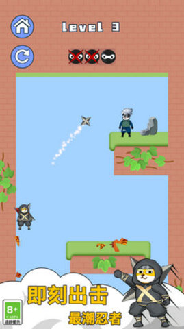 1.玩家可以跟随忍者的冒险,消灭大量对手来克服一系列障碍和陷阱,来到这里开始挑战。